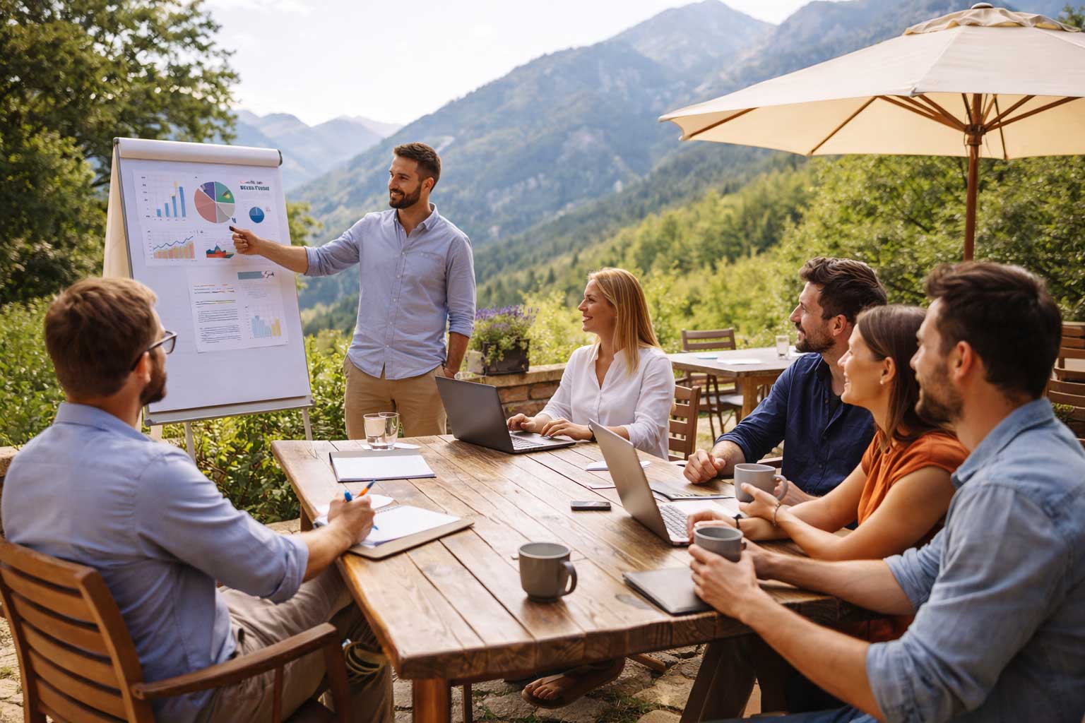 Toute l’année, nous recevons guides, professeurs de yoga, organisateurs de stages, entreprises, coachs et acteurs du bien-être. Les terrasses, jardins, espaces extérieurs, le salon convivial et la restauration maison permettent d’organiser facilement retraites, séminaires en petit comité, ateliers ou séjours outdoor. Notre cuisine, entièrement faite maison, s’adapte aux besoins de chaque groupe et aux régimes spécifiques. Pour en savoir plus sur nos propositions dédiées aux professionnels, consultez la page :
